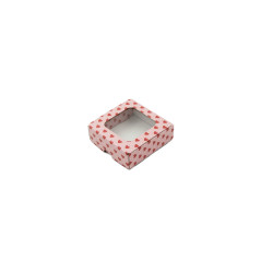 Väike roosa neljakandiline kaheosaline kinkekarp on tehtud lainepapist.